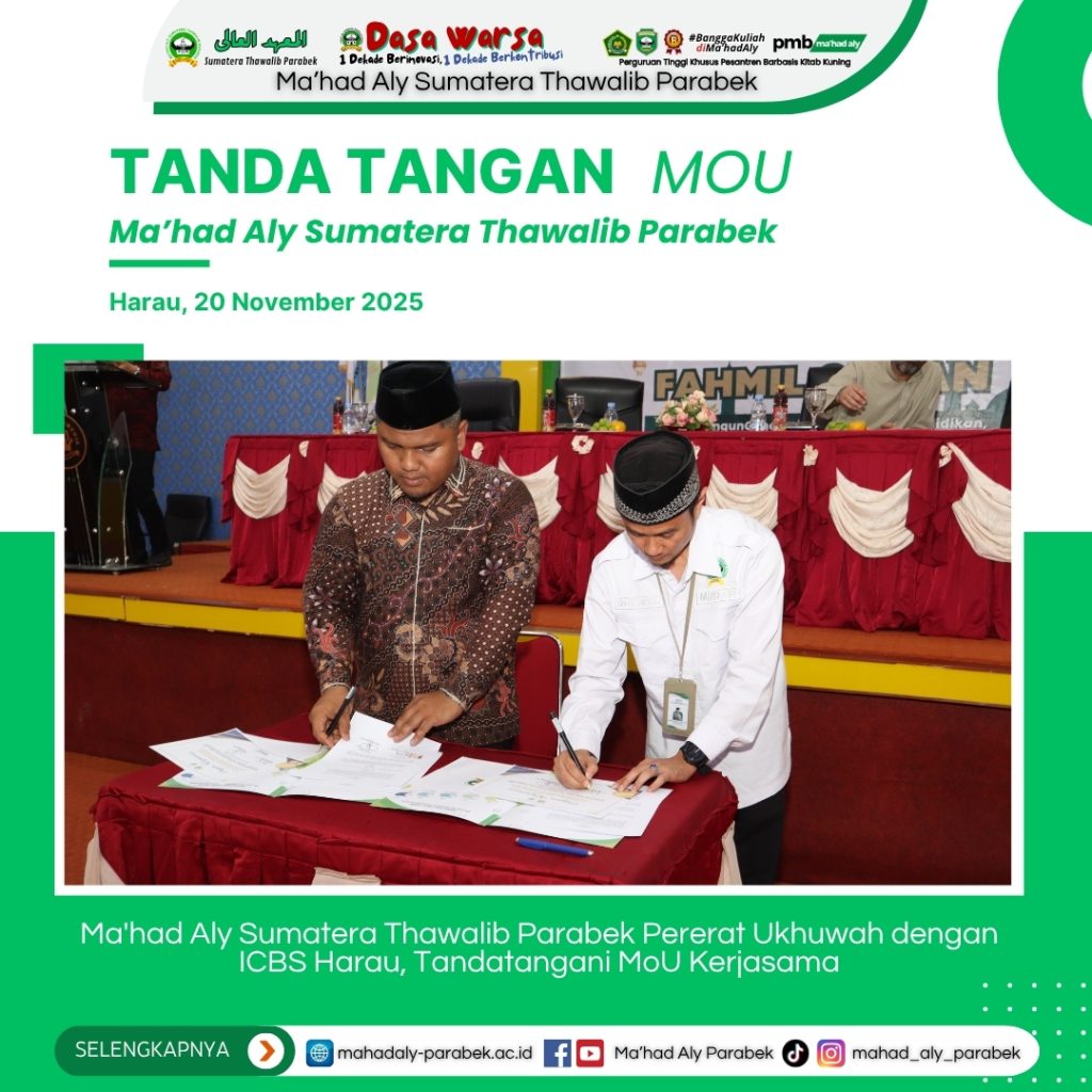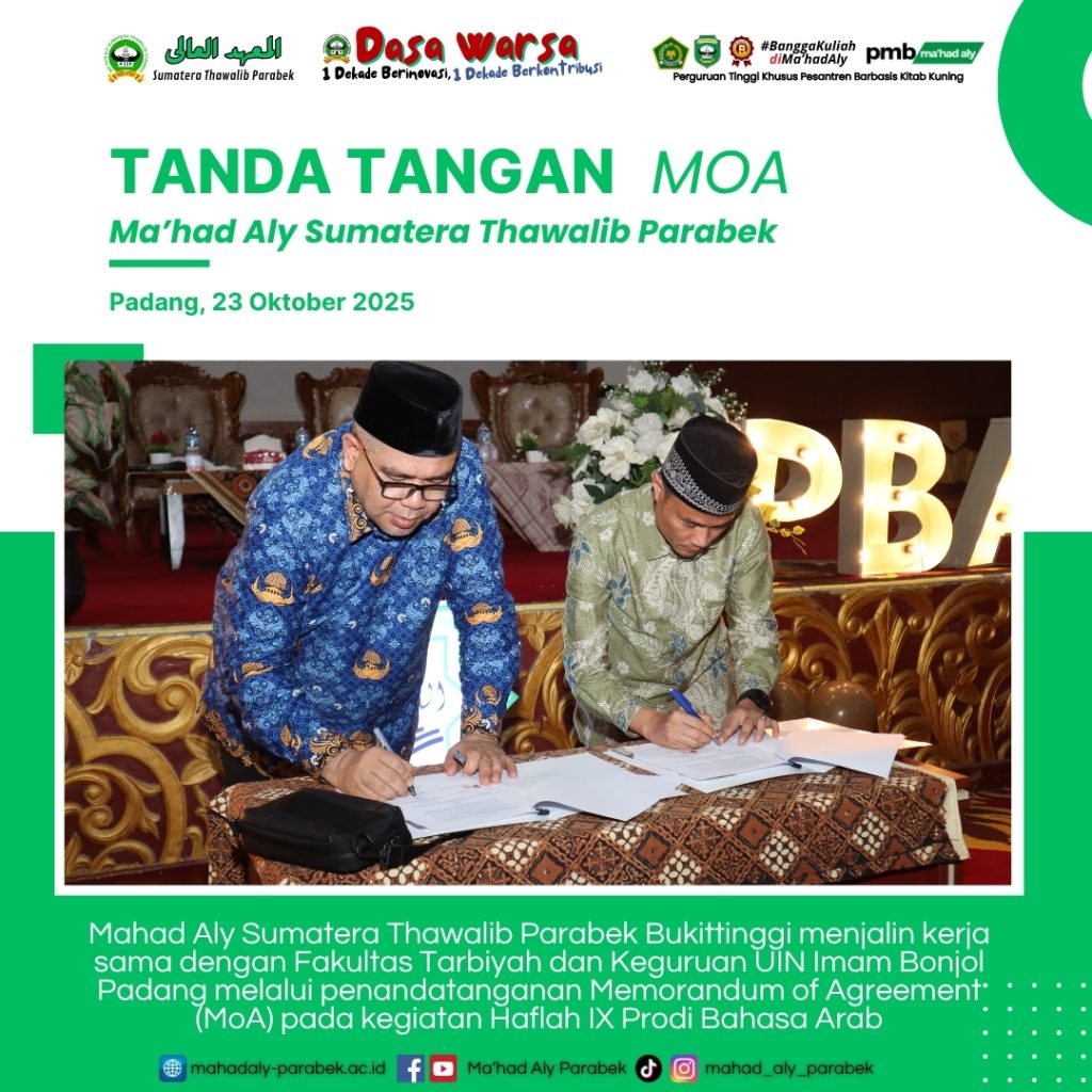 Canduang, Agam — Mudir Ma’had Aly Sumatera Thawalib Parabek beserta jajaran staf menghadiri kegiatan silaturahmi Ma’had Aly se-Sumatera Barat yang digelar di Ma’had Aly Syekh Sulaiman Arrasuli Canduang, Kamis (5/2/2026). Kegiatan ini menjadi ajang strategis untuk memperkuat komunikasi, kolaborasi, serta Selengkapnya…